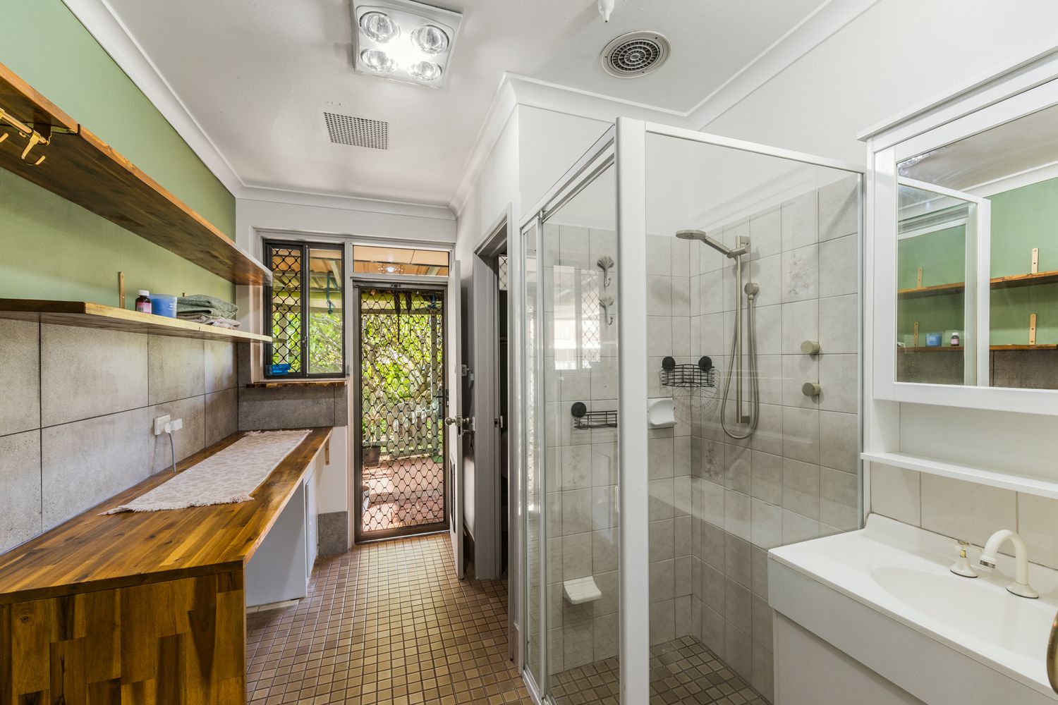 - A combined laundry and bathroom facility leads to your own private back patio, which includes a built in outdoor table
