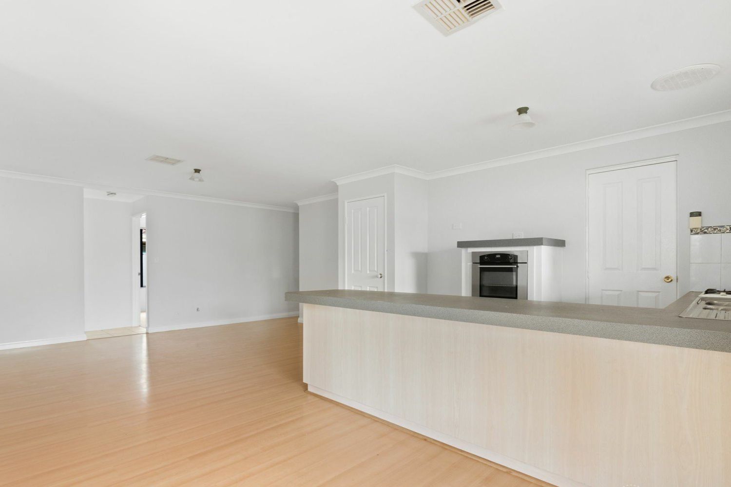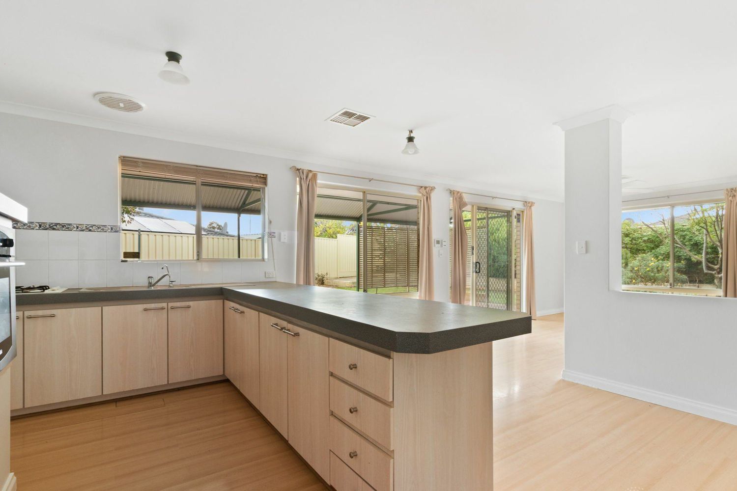 A functional kitchen with ample storage overlooks the open-plan living area, making entertaining and day-to-day living easy.
