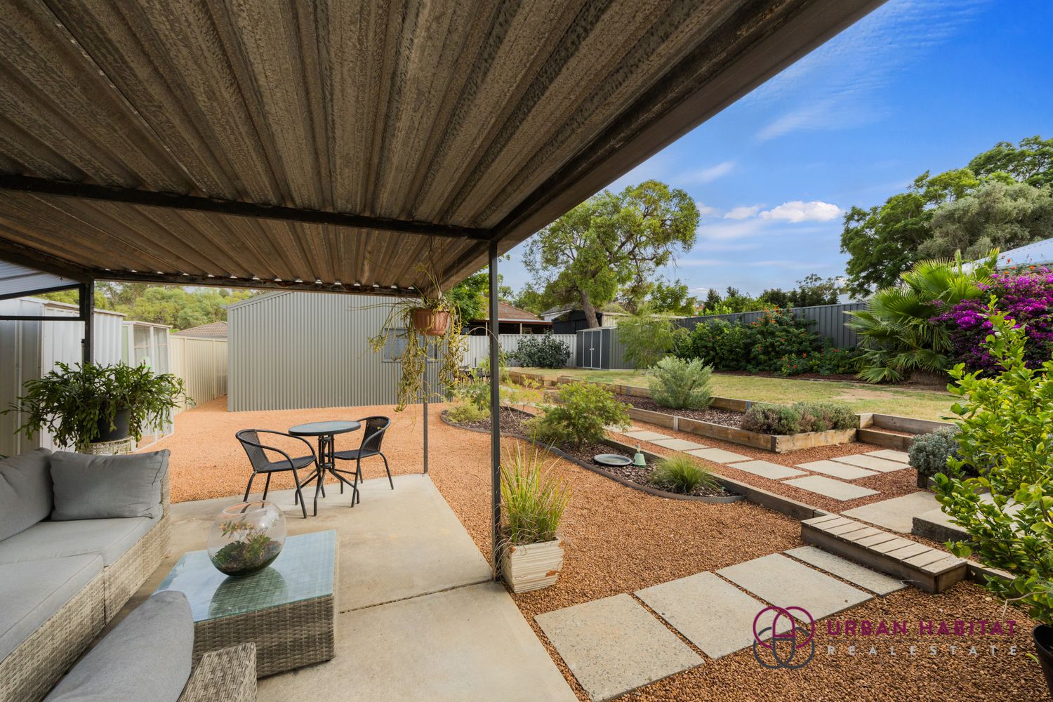 Step outside and you’ll discover a beautifully landscaped backyard, complete with a near-new shed and multiple peaceful spots to sit, enjoy your morning coffee, listen to the breeze through the trees, and soak in the calming birdsong.