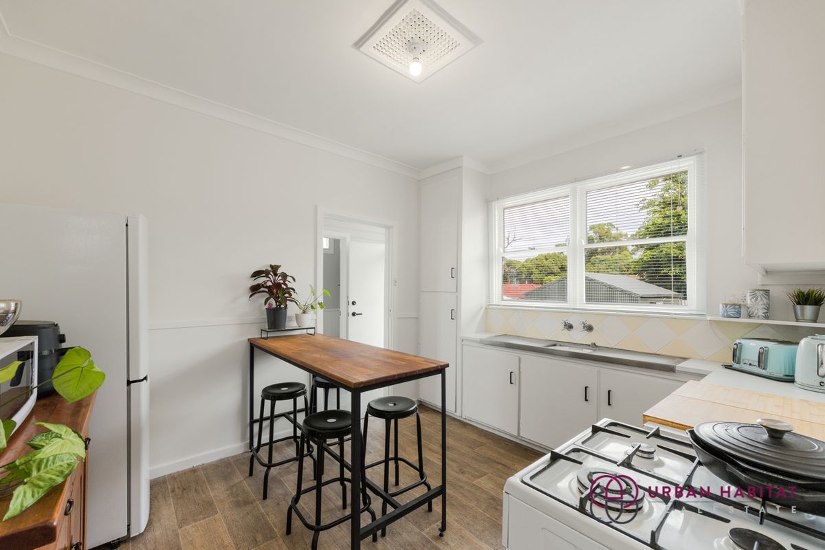 The kitchen sits at the rear of the home, featuring wood-look flooring, an updated layout, and a beautiful outlook over the garden. A separate laundry and WC lead out to a new rear landing deck, creating seamless indoor-outdoor living.