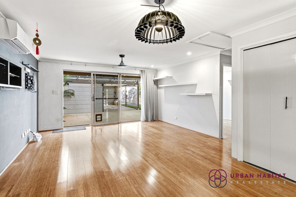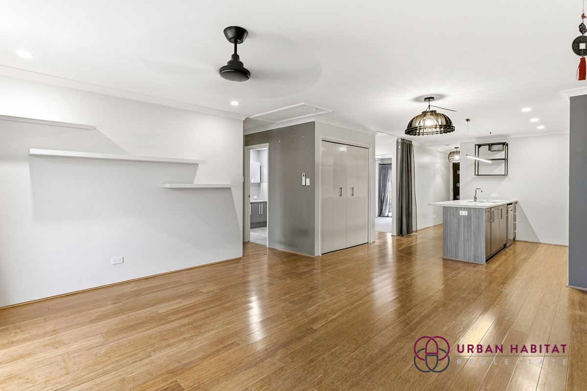 Step inside to discover stylish composite floorboards that extend throughout the home, creating a warm, cohesive flow. The open‑plan living and dining area seamlessly connects to the outdoor entertaining space, with natural light filling the interiors through large windows. Ceiling fans have been installed in all bedrooms and the main living area, and there’s a split‑system air‑conditioning unit both in the living room and the master bedroom for year‑round comfort. Roller shutters throughout the property ensure additional privacy, security, and insulation.