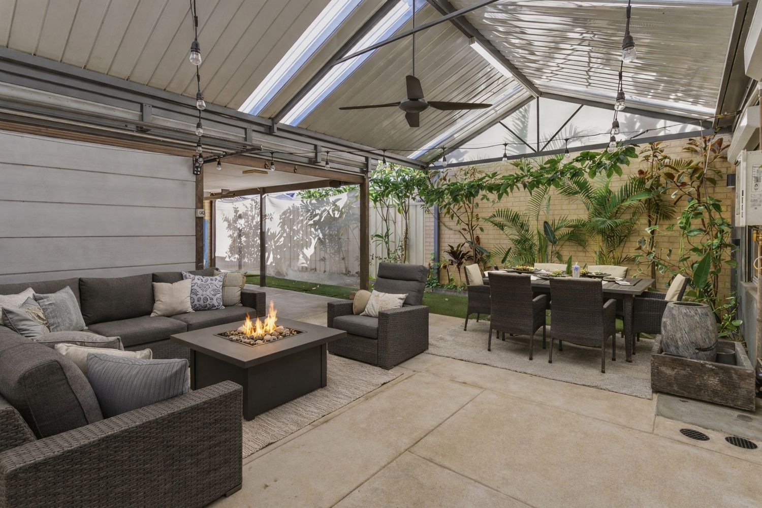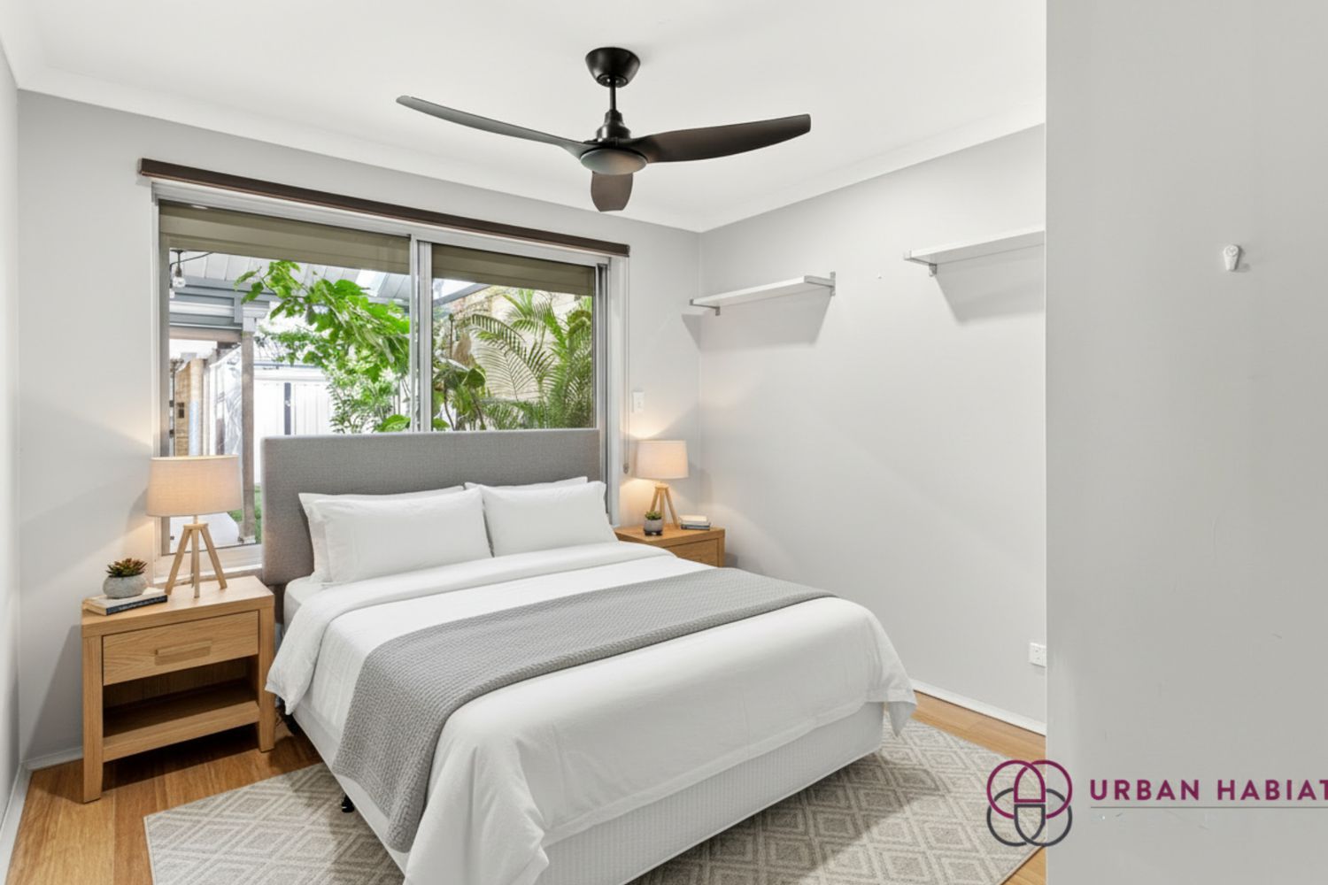 Outdoors, the attention to detail continues. The patio area includes a ceiling fan and privacy screening on one side, ideal for relaxed entertaining in your own private retreat. Synthetic low‑maintenance grass covers both the front verge and rear yard, complemented by front and rear sprinklers set on timers. There’s limestone paving out the front—perfect for parking a trailer or motorbike—and extra storage opportunities with attic access in the main house via a fold‑down ladder, plus additional space above the carport.